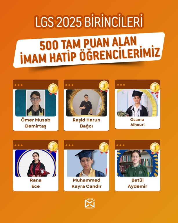 2025 Liselere Geçiş Sınavı’nda (LGS) 500 tam puan alarak Türkiye birincisi olan öğrencilerimizi yürekten tebrik ediyoruz!
